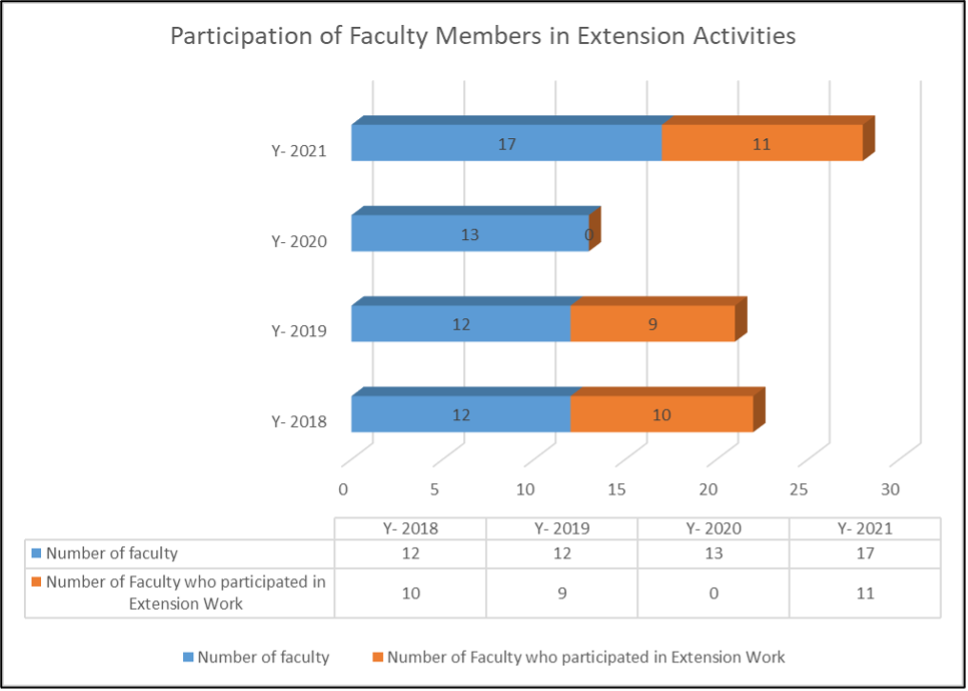 Active participation of faculty members in extension activities during the year 2018, 2019, and 2021 are evident in the figure below as above 60% of the number of faculty members were involved in extension work.